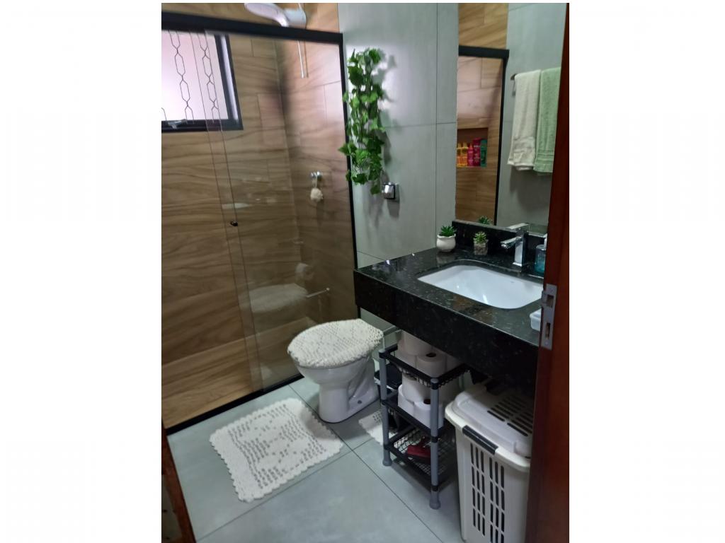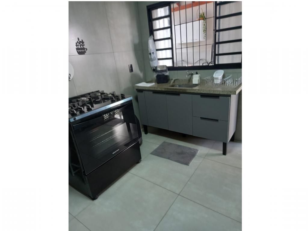 2 quartos, 1 banheiro, garagem para 3 carros, lavanderia, quintal, cozinha, sala